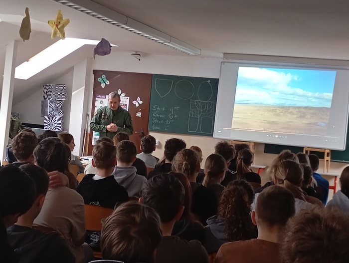 Žáci druhého stupně se nejprve sešli v ateliéru, aby si vyslechli přednášku o vojenské činnosti, její historii a misích.  Nejvíce je zaujalo povídání o misích v Bosně a Afghánistánu. Poté jsme se přesunuli na hřiště, kde proběhla praktická část rozdělená do čtyř stanovišť.