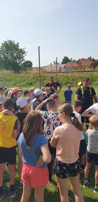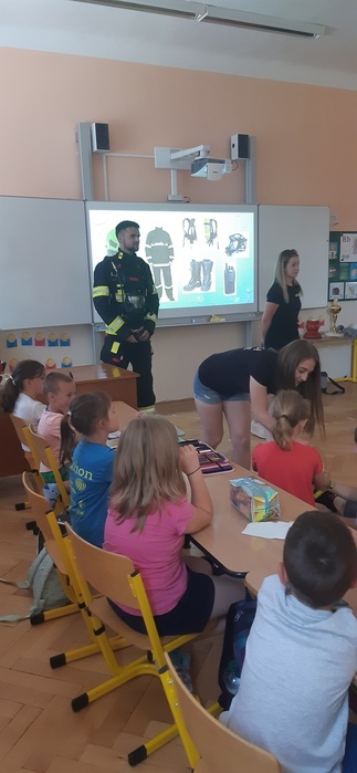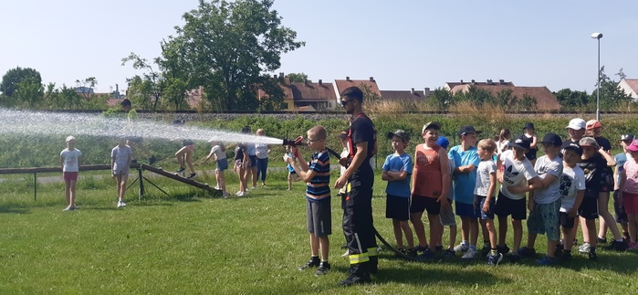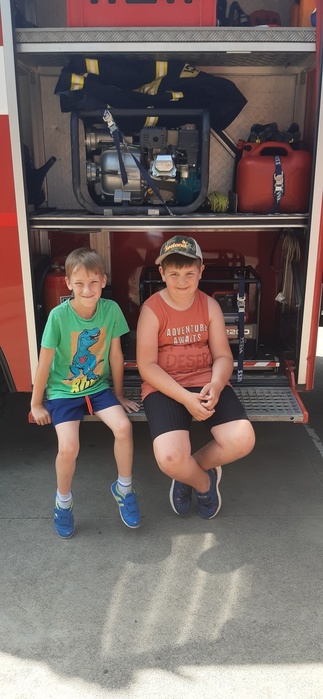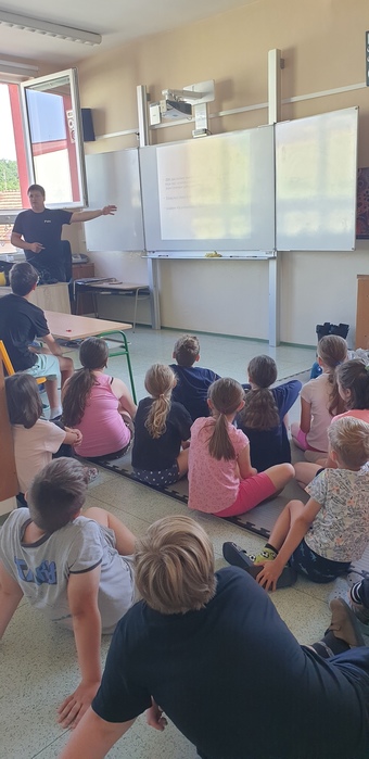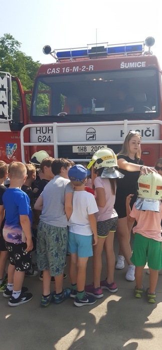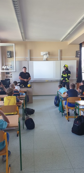 Ve čtvrtek 22.6. k nám do školy zavítali místní hasiči a hasičky. Tento den byl rozdělen na dvě části. V první se žáci přednáškou dozvěděli, jak hasičský sbor funguje, jak probíhá jejich výcvik, seznámili se s různými druhy hasičských vozů, dozvěděli se, který zvukový signál vyhlašuje požární poplach nebo zkoušku sirén. Dále zjistili, co všechno na sobě musí mít hasič než jde do akce.