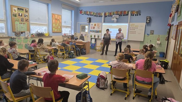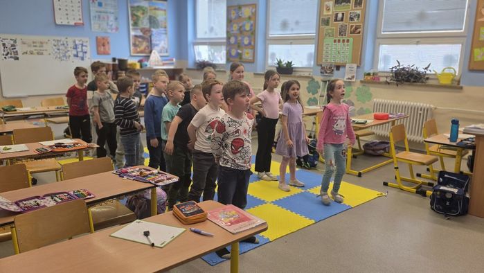 Několikrát měli společný tělocvik, kde trénují vybíjenou, závodí, hrají hry. Proběhla i tandemová výuka - společné učení. Žáci si vzájemně předvedli, co vše se již ve škole naučili - četli, počítali, soutěžili, hráli hry. Příjemné chvíle si užívají i při zpívání. Prvouka a tělocvik proběhly venku. Děti pozorovaly čapí hnízdo, rozkvetlé květiny, stromy a k tomu si užily sportovní aktivity na hřišti.